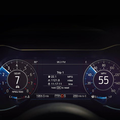 Comme celui de la Ford GT, le tableau de bord est pour la première fois équipé d'un écran 12 pouces entièrement numérique et personnalisable en fonction du mode de conduite sélectionné. L'affichage pourra être configuré parmi sept déclinaisons de couleurs. Lors de l’activation du mode Line Lock, une animation inédite s'affichera sur ce même écran 12 pouces.