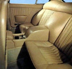 jantes alu, climatisation ( avec possiblité d’avoir un réglage séparé à l’arrière ), 4 vitres électriques, installation hifi avec magnétophone lecteur/enregistreur de cartouche à 8 pistes, portières à ouverture et fermeture assistées par des moteurs électriques, set de bagages fait par un très grand sellier, adaptés au coffre et assortis au cuir de l’habitacle.